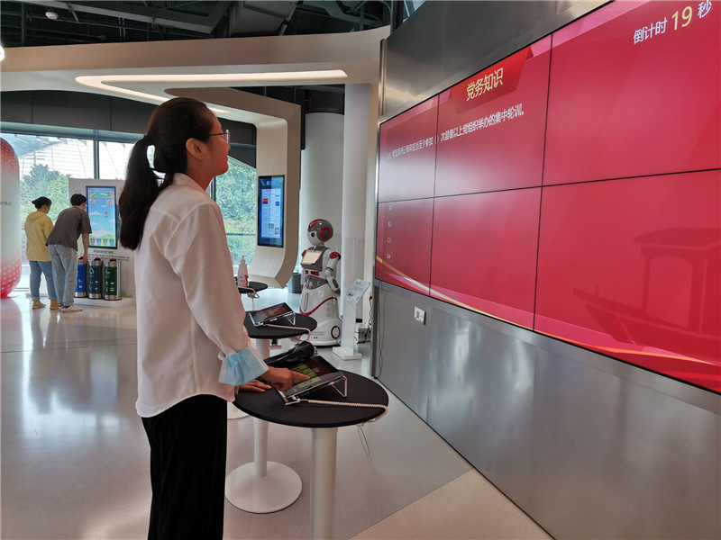 在杭州市党群服务中心,杭建人一直认真听、仔细看、详细问、扎实记,还积极主动开始了党的问答,认真查询党的资料,我们在交流中凝聚共识,因为我们是接班人!